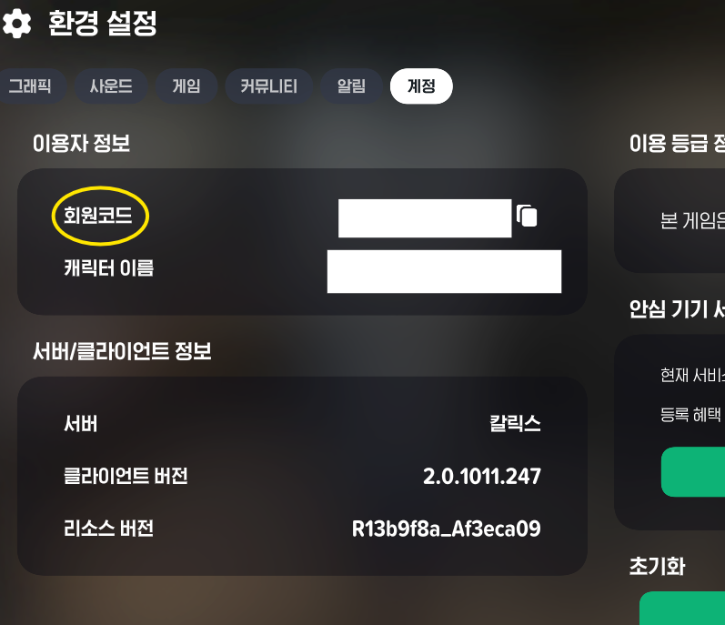 계정 클릭 하면 회원 코드가 보입니다!