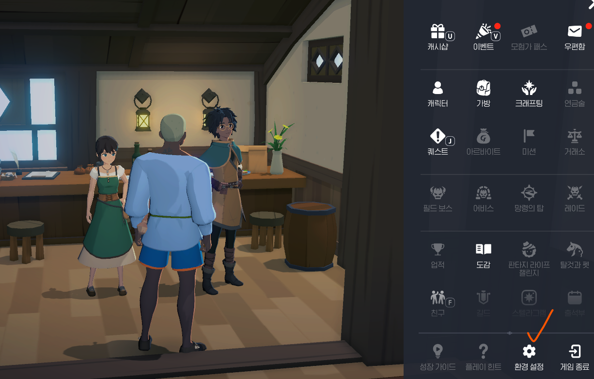 환경설정 클릭